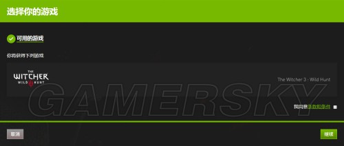 接下来就显示你所获得的游戏,当然就是期盼已久的巫师3咯,将“我同意条款和条件”右侧的方框勾上,“继续”。