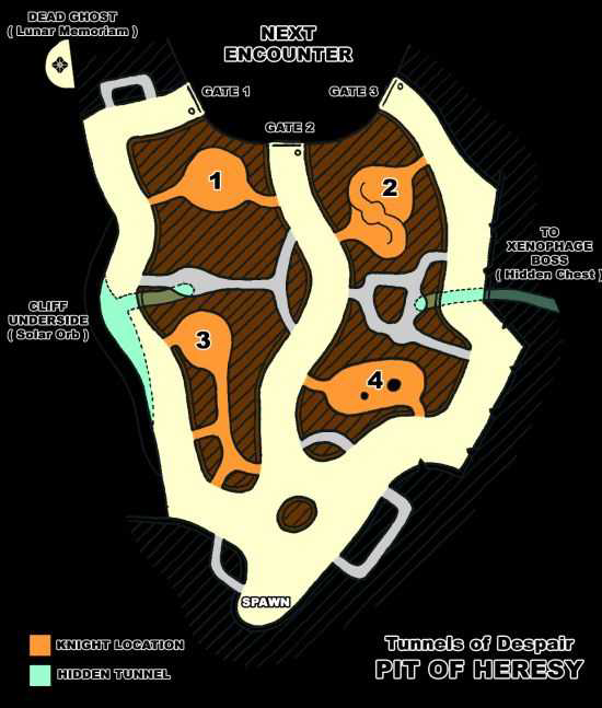 配置方面沿用上一关的就行,清怪方面只要不是太莽都不会出事,主要还是看门的三个奥格非常讨厌。笔者在之打前从reddit上找了地图并规划了一下路线,总的来说要多加利用最左侧那条路,因为上下层的结构可以非常容易的绕开奥格。术士正面遇上奥格可以尝试卡住拐角,抱球先近战+跳跃冲刺到奥格背后,然后再次冲刺拉开距离,时机恰当的话甚至可以无伤通过,我用下来感觉是比较好的处理办法。具体路线是先进入3号洞拿第一个球,然后冲过中间的奥格在中间砸球。然后进入1号洞拿到第二个球,从左侧较安全的路线绕到起点,再到跑到右侧砸球。最后砸完球转身进2号洞拿到最后一个球,穿过1号洞再到左侧砸球过关。实测下来这条路线比较安全。