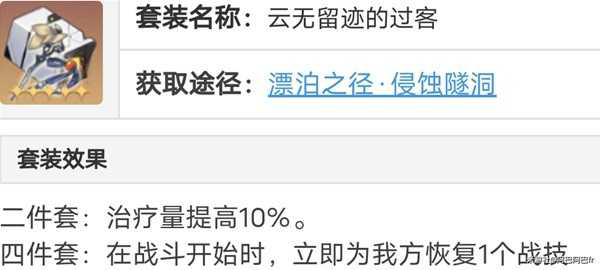 信使套是现在最泛用的辅助套装了,其实全队的12%增速我个人认为要比10%的治疗效果容错性要更高。