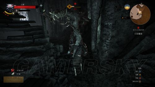 接下来你可以放昆恩之印以防不小心被魔像K到,就开始打魔像吧!! 魔像这时候应该会被你卡在那个角落,你可以放心地打;有时候它会往场地中央走,这时候你就要再引它一次,多打几次后就能轻松打赢它了!!! 放一张我卡它时候的图片,希望跟我一样等级稍低但还是想过这任务的狩魔猎人能顺利解完这任务。