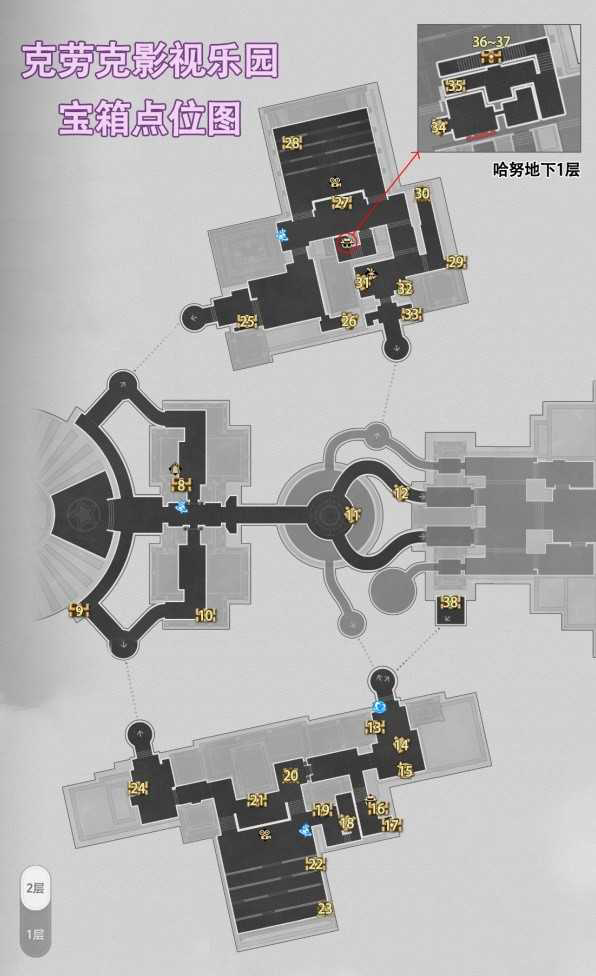 第36号与37号宝箱在同一个地图点位上,不同的是36号宝箱在楼梯下方,37号宝箱在楼梯上方。