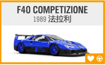 同样给出两个选择,首推F40 C,S2无可争议的全能车之一。加速均匀,过弯性能优秀,可劲敌可线上,公路上操控略逊于轨道车CCGT,缺陷就是进草容易滑且刹车较弱,不适合雨天,但上限更高,环岛S2 WR认证车型,比599XXE快了快2秒。齿比做了较大改动,且由于调校偏线上,因此降了一些极速到400出头,习惯原厂的MC玩家慎用。