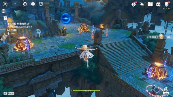 PS:每轮结算后请尽量选水,冰加成,不然最后一轮需要在5.6.机关这拿芭芭拉平A附水,这边的大怪有低概率形不成永冻,其他位置不用管,怪跑不出来的。