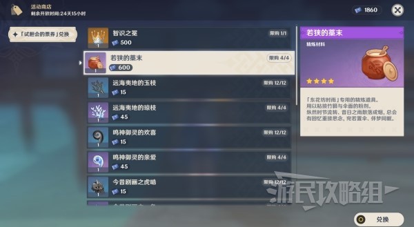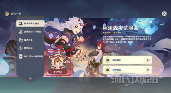 在活动期间还可以获得【试胆会的票券】(可在活动页面右上角查看)。在活动商店用【试胆会的票券】兑换精炼材料【若狭的藁末】,即可在武器界面精炼这把武器。