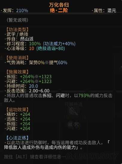 轻功我们选了六虚,1是因为它可以迟到然山辅助心法的加成,2是他带提气速度,我们攻速太快,很容易触发连击
