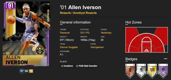 这张紫水晶级别的艾弗森投射能力只能说一般,中投均为88,三分球三项数据给到了81,但在热区及球鞋、教练的加成下也不失为一种进攻选择;