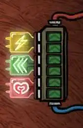 红色代表无电量,绿色代表有电,黄色代表正在回复的电量,由于电量回复比较困难【90秒略以及落雷需要奶奶读书帮忙】所以要尽可能避免经常拔插电路,潮湿度高时候的漏电会导致电量的流失,因此雨天格外请注意防水问题。