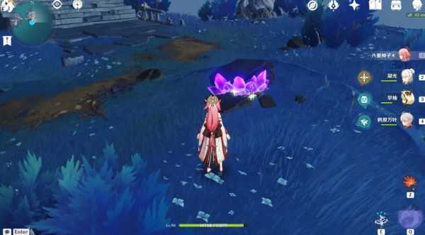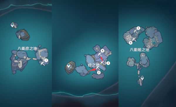 1.八衢彦之地传送点,只有一条路线,一直沿着道路走到最高的平台,道路旁即可看到3个紫晶块