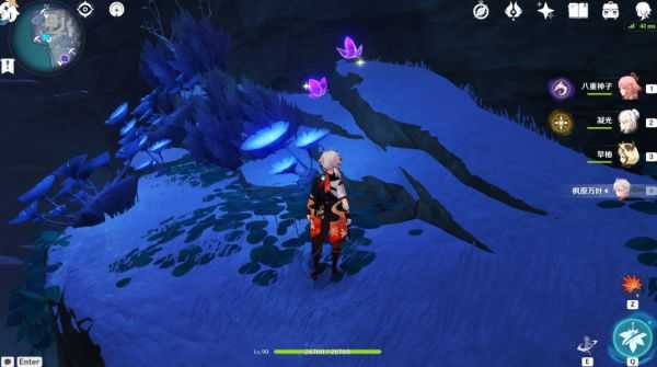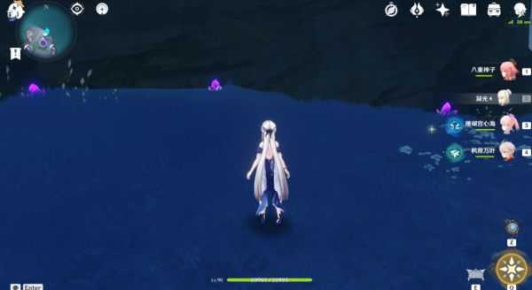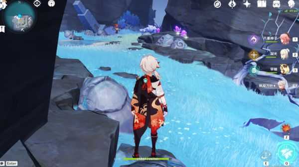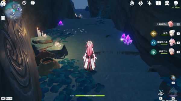 5.蛇心之地左下角传送点,转东北方向跳到洞窟里,继续往东北方向滑翔即可,此处岩史莱姆守着4个紫晶块