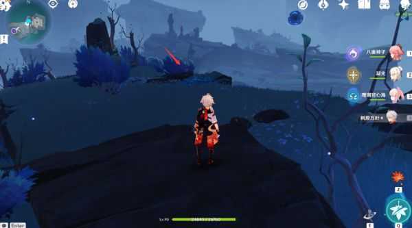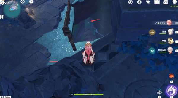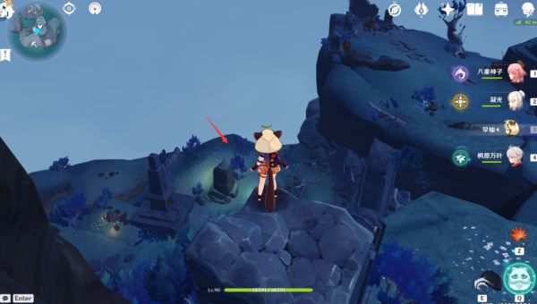 3.狭间之街传送点转东方向视角,对着大石头左手边一直冲刺,路过火深渊法师,看到一株薄荷和丘丘人图腾,图腾左手边跳下去回头看即可,此处3个水晶矿