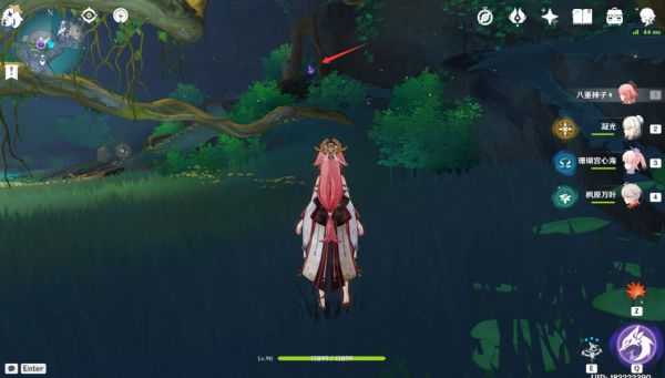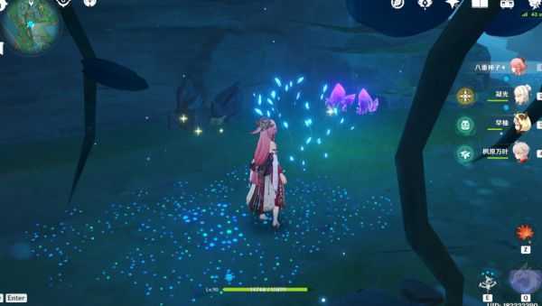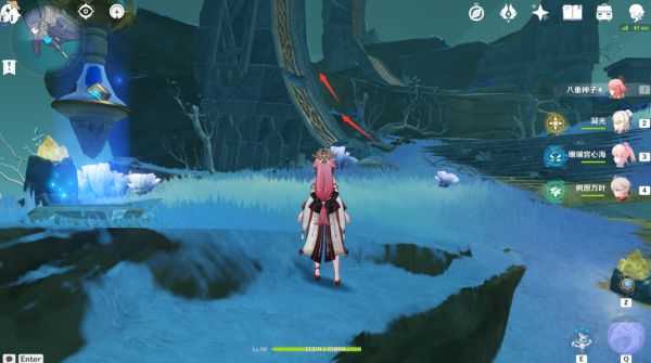 5.大日御舆下方传送点转西北方向视角,直走经过枯木,向上爬三个*平台即可,此处2个水晶矿