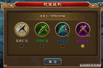 通过上面的暴的东西大家应该可以看的出来,高级的矿镐暴出来的东西质量几乎是非高级的两倍以上,但是我们在游戏里面建议有RMB实力的玩家使用高级矿镐。非RMB玩家就只能一步一个脚印慢慢来了,不过这里建议,初中级的就不要挖了,留着合成高级的,平常就挖挖普通的就好了。这样相对合算。