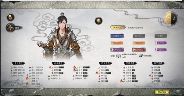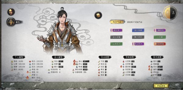 骰子ROLL好了,既然为了乞讨那么性格无私义气无异议必选,还剩一个是天伦与爱家看个人喜好,个人认为选爱家比较好,因为爱家收道侣较容易。其次,在洪荒难度下属性优先级:悟性>攻击>幸运。如果你是老手可以悟性>幸运>攻击,譬如:玩了400小时的我已然对boss技能倒背如流,只要是远程15功也是随便开局的,首先保证悟性幸运过100,攻击有无无所谓。