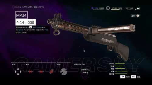 1、MP34:解放3个以上钟楼就会解锁免费获得该武器,或者购买