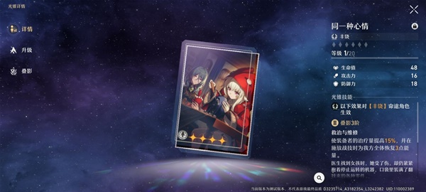 这件光锥是主打大招的,因为娜塔莎战技是单人,所以这件适合战技点紧缺或需要频繁奶全队的场合。