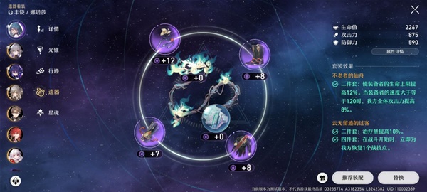 两件套提高生命上限,装备者速度大于120时提高全队攻击。
