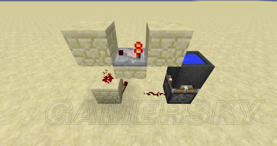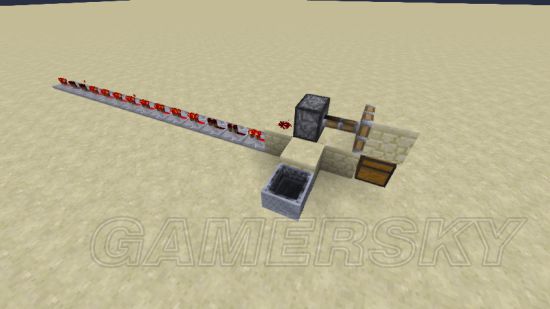 此时如果我们用活塞把水缸拉走,或者在箱子上面放个不透明方块让箱子无法打开,或者用活塞抽走矿车下面的检测铁轨。