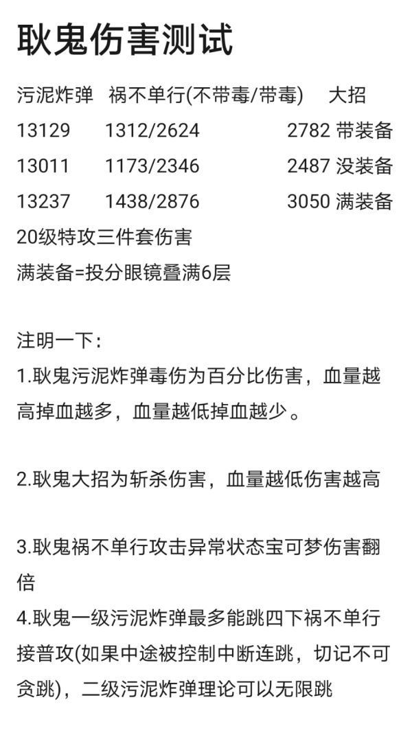 我在这里也做了个耿鬼伤害测试,因为耿鬼技能伤害计算特殊的原因,伤害仅作对比。