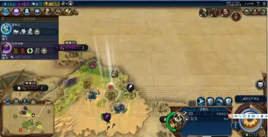 投石和蛮子大战300回合,旁边的祖鲁狗并不会干扰我们操作。移民出来往左走坐橄榄,家里锤投石,2号狗去探阿拉伯首都。
