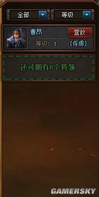 当将领被他人俘虏后,可对其进行营救。俘虏若没有被营救,在打工的过程中逃离回来将变成重伤,重伤状态持续时间等于其自动逃离的剩余时间。重伤状态的将领无法参战,可用金疮药立即救活。打开将领面板可看到需要营救的将领: