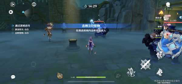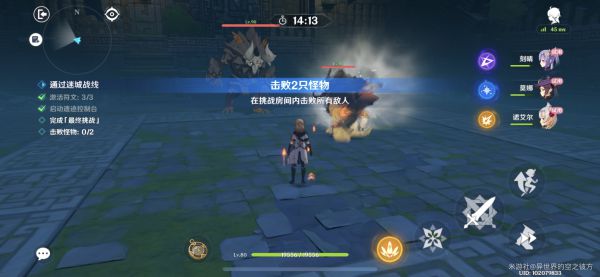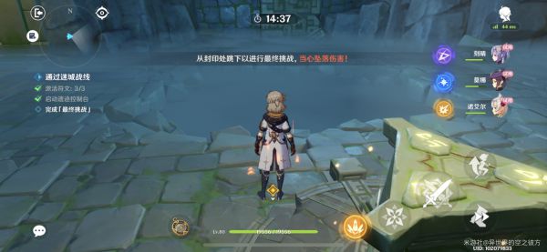 其中一项需要通过普通与重击攻击击败敌人获得。(以下是本关配队,刻晴,阿贝多,莫娜,诺艾尔)