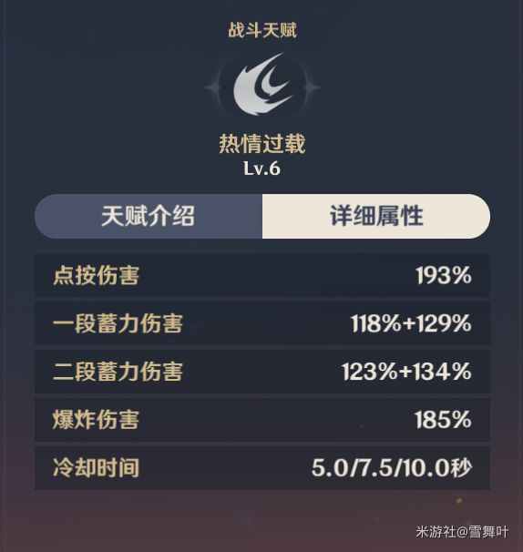 冷却时间:由于4天赋降低20%冷却时间,所以实际冷却为4/6/8秒。