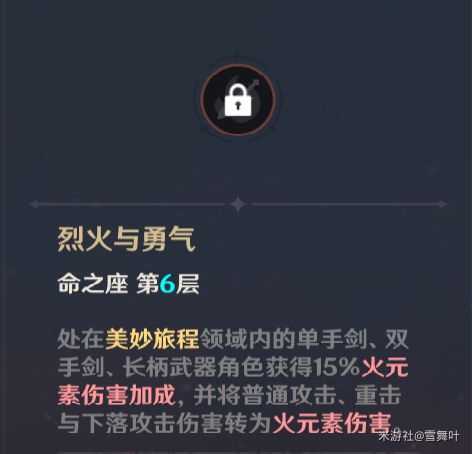 6命直接转化为火之高兴,在领域内为纯火元素输出,并额外增加15%火元素伤害。