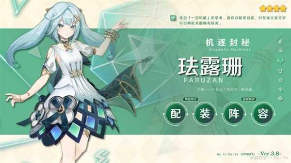 《原神》3.8下半复刻了四星的风属性角色珐露珊,那么在3.8版本下要怎么培养呢?请看下面由“O丶Ha丶Yo”带来的《原神》3.8版本珐露珊详细培养指南,希望对大家有用。