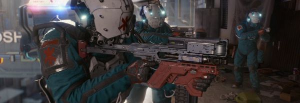 旅馆往左边酒吧导航,路线中间有一群人围着一辆卡车(也可能没有),左边有个死掉的NCPD,固定橙:全息染色警用护目镜