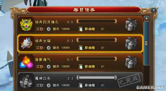 每日必做为大家提供了一个快捷接取任务的通道,玩家可通过游戏界面右上方的【每日必做】查看到各项活动的关键信息,还可在完成日常必要的活动或副本任务后获得丰厚的银币、聚魂幡和宝箱奖励!