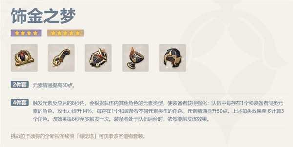 饰金对于皇女而言最好是当做可选项之一,而不是一口咬定最佳圣遗物,皇女毕竟出装比较灵活,甚至还能带千岩这种,目前没有必要专门为了皇女刷一套饰金。