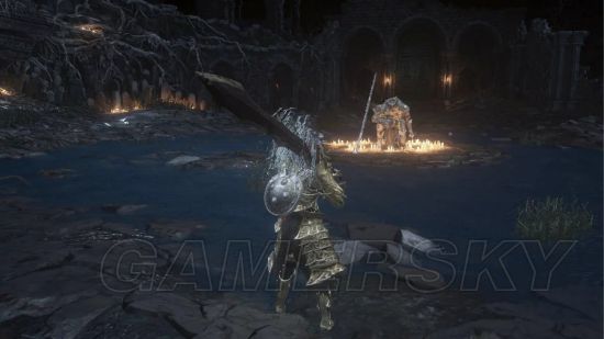 第二个boss冷冽谷的波尔多的房间对面也有一个房间(一堆洛斯里克骑士那里),找里面的老婆婆对话可以得到通往下一场景的重要道具以及誓约——青教。