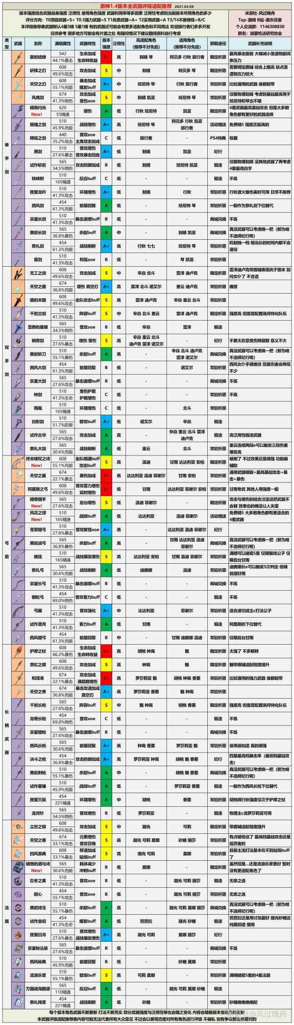 正文 《原神》1.4版本全武器评级与适配角色一览 游戏小天使 /2025-11-17 17:30:02 /2 浏览量 1117 《原神》中4星及星武器有很多,那么这些武器的排名如何呢?各武器又都适合哪些角色呢?现在为大家带来“风过晚舟”分享的《原神》1.4版本全武器评级与适配角色一览,希望对大家有所帮助。 翠罗衫上,点点红无数。 -- 展开阅读全文 --