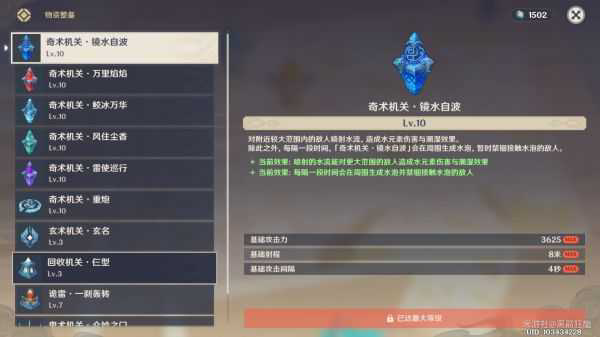 四种元素机关(水、火、冰、雷)、重炮和buff机关(玄名)一定要到满级,诡雷要高级一些,其他无所谓。