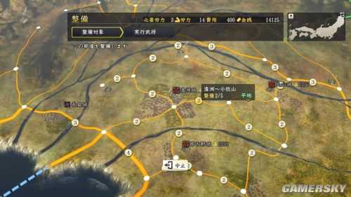 在本作中,还有一个使用劳力来扩大街道幅度的建设指令“整备”,由于街道扩大之后,不但部队行军速度会上升(在游戏一开始的时候,除了东海道与京都周边主要街道之外,其他道路都很狭窄,因此部队行军速度也会受到限制),而且当整备进行到一定阶段之后,就可以让交通变得便捷,借此增加据点人口数量,因此玩家们也可以来好好规划,借此来更有效率发展自己的城镇!