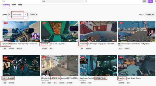 搜索“Drops Enabled”,筛选出能掉落资格的直播间,选择任一房间进行观看,随机获取测试资格,掉落之后页面右上角的小铃铛会提醒: