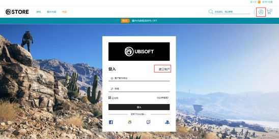 打开育碧官网:,右上角个人头像,选择建立账户: