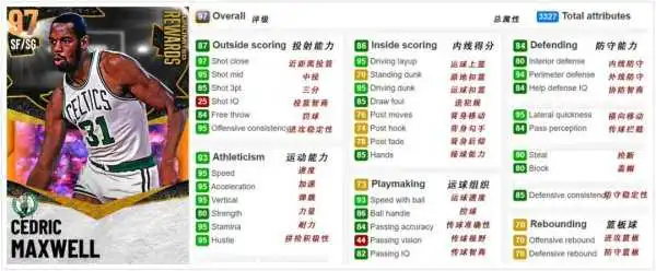 本赛季的线上无限赛终极奖励为银河马克斯韦尔,虽然是不太熟悉的上古名宿,但这张卡的实力还不错:速度快扣篮猛防守也不错,魔术师库里同款Pro2背运,而且还是一位身高2米03臂展2米15的SG,可惜就是没有远程炮台紫章。