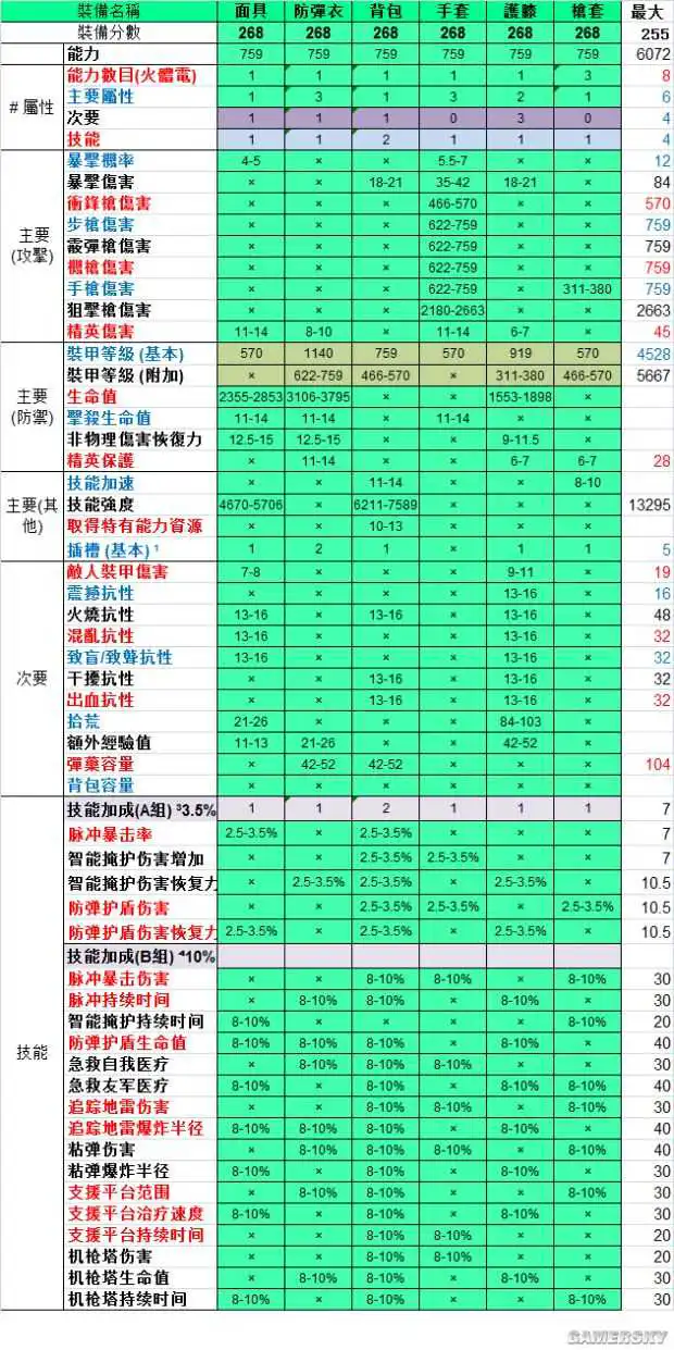 《全境封锁》1.3版本中大家经常会研究268套装怎么洗,搭配什么属性好,下面小编带来“墨得瑟”分享的《全境封锁》268绿色套装属性一览表及插件推荐,供大家参考。