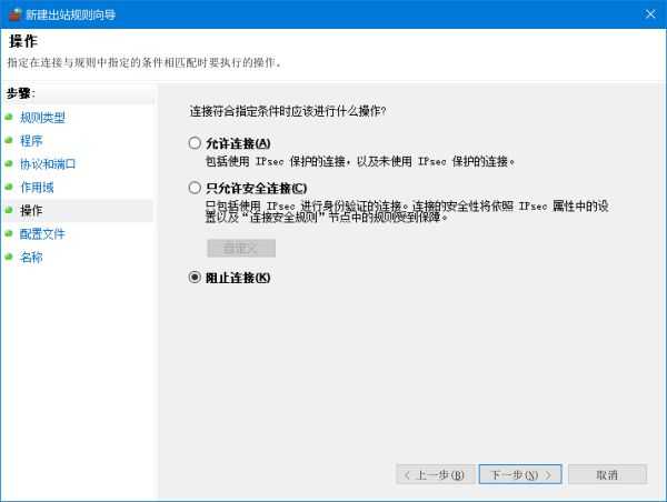 然后下一步,这里点阻止连接: