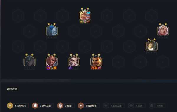 铁骑盾武器阵容在赛季末终于再次成为版本吃分最稳阵容,这套阵容现在吃分强度非常高,阵容成型较为容易,如果不胡嗨可转任何铁骑体系,是赛季末,吃烂分得首选阵容。但阵容6阶段后强度下降开始走下坡路,吃鸡较难。