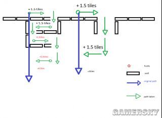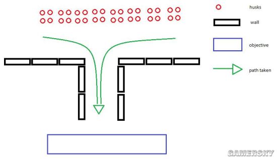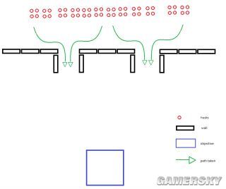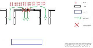 下图是在SSD中非常常见的错误建造方式:缺乏迂回结构导致毒尸怪只能在陷阱中途径一个有效距离。