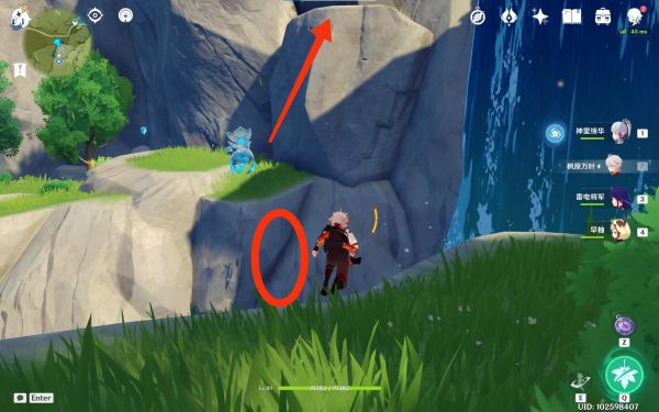 先爬到这个高台上,这上面应该有个木箱,有木箱就变桶贴在后面,没有木箱就直接变成木箱,猎人来了直接隐身飞下面我画圈的那个石头那,那个位置基本是死角,很难看见,等猎人走了再重新爬上来。如果被定位了的话,就只能按图二的飞对面山崖再反向回飞等定位过了隐身再继续贴那凹槽那里了。总的来说这个图游侠比较坐牢。