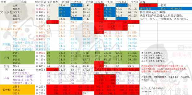 《绝地求生大逃杀》每种武器的伤害是不同的,而打在不同防具上的伤害也是不同的,但是很多玩家都只知道AWM无论对方几级头盔,爆头都是一枪死,而其他的知道的就比较少,下面小编就为大家带来《绝地求生大逃杀》武器伤害表解析,希望对各位玩家了解枪械,了解伤害有所帮助。