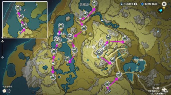 层岩巨渊地形比较复杂,建议跟路线走,以不同的颜色标记了,逆时针走一般是从高到低