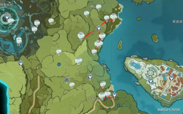 建议携带“双风”角色跑图(队伍里带七七小地图会显示璃月特产),以及一些减少体力消耗的食物及红扇子!