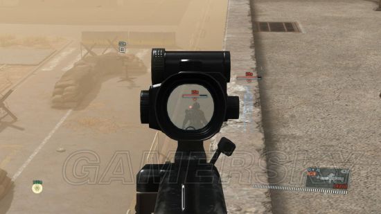 4.用开镜的方式移动如下图可以打到下面正在悠闲的雾部队