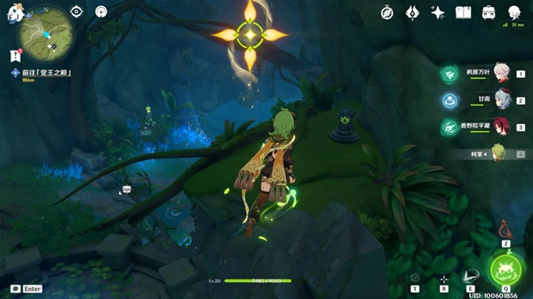 我们先来到图示位置跟随仙灵前往降水位机关处,期间注意体力的损耗!