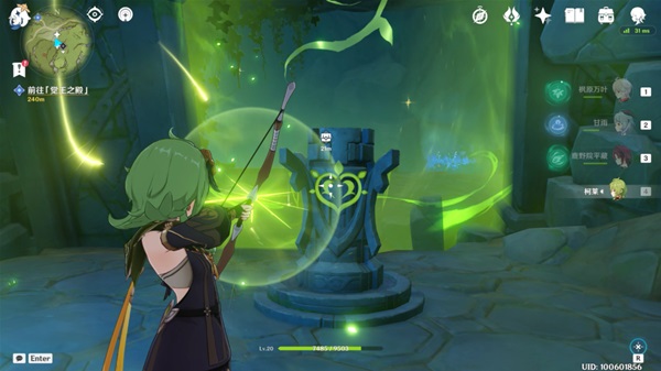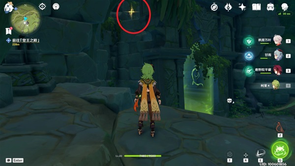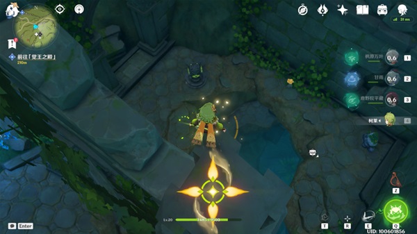 我们跟随仙灵到达山洞后需要激活四个草元素方碑以激活降水位机关