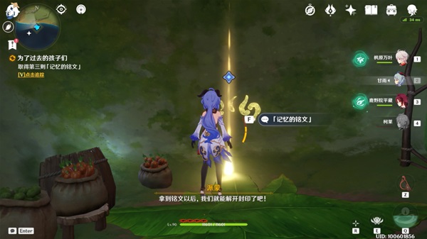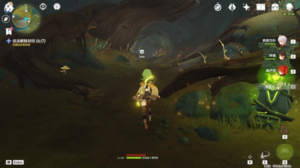 第5、6个封印在路上就能看到,后续我们来到健壮的草种子这,对它弹奏激活。